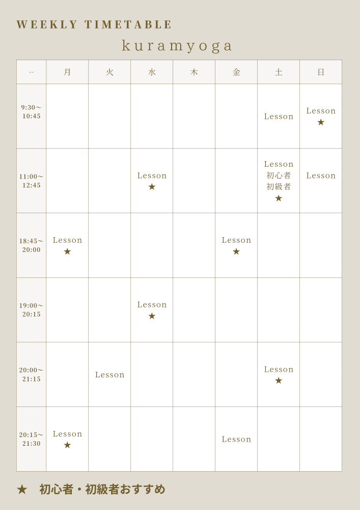 その他のレッスンも、参加されている生徒様に合わせてLevelを調整していきますので、始めてヨガをされる方、ヨガのポーズに自信がない方でも、どのレッスンでも安心してご参加していただけます。